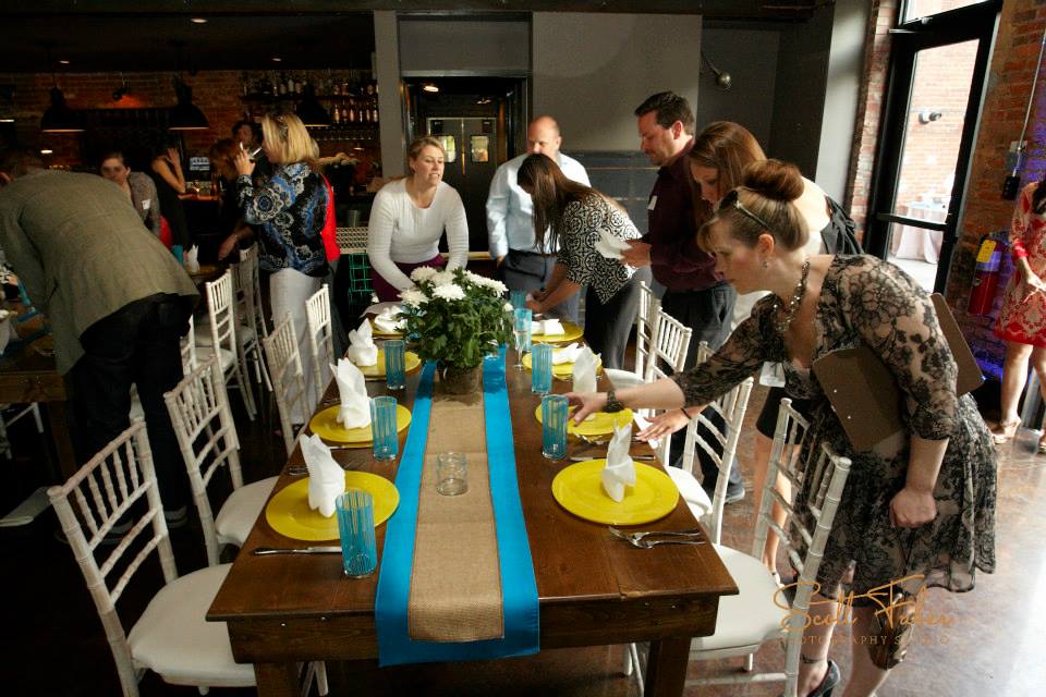 Before the main course began a tabletop placement and décor competition was held. The theme was bistro chic vs. farm-house retro. Each team was given options for linens, floral, and tabletop.